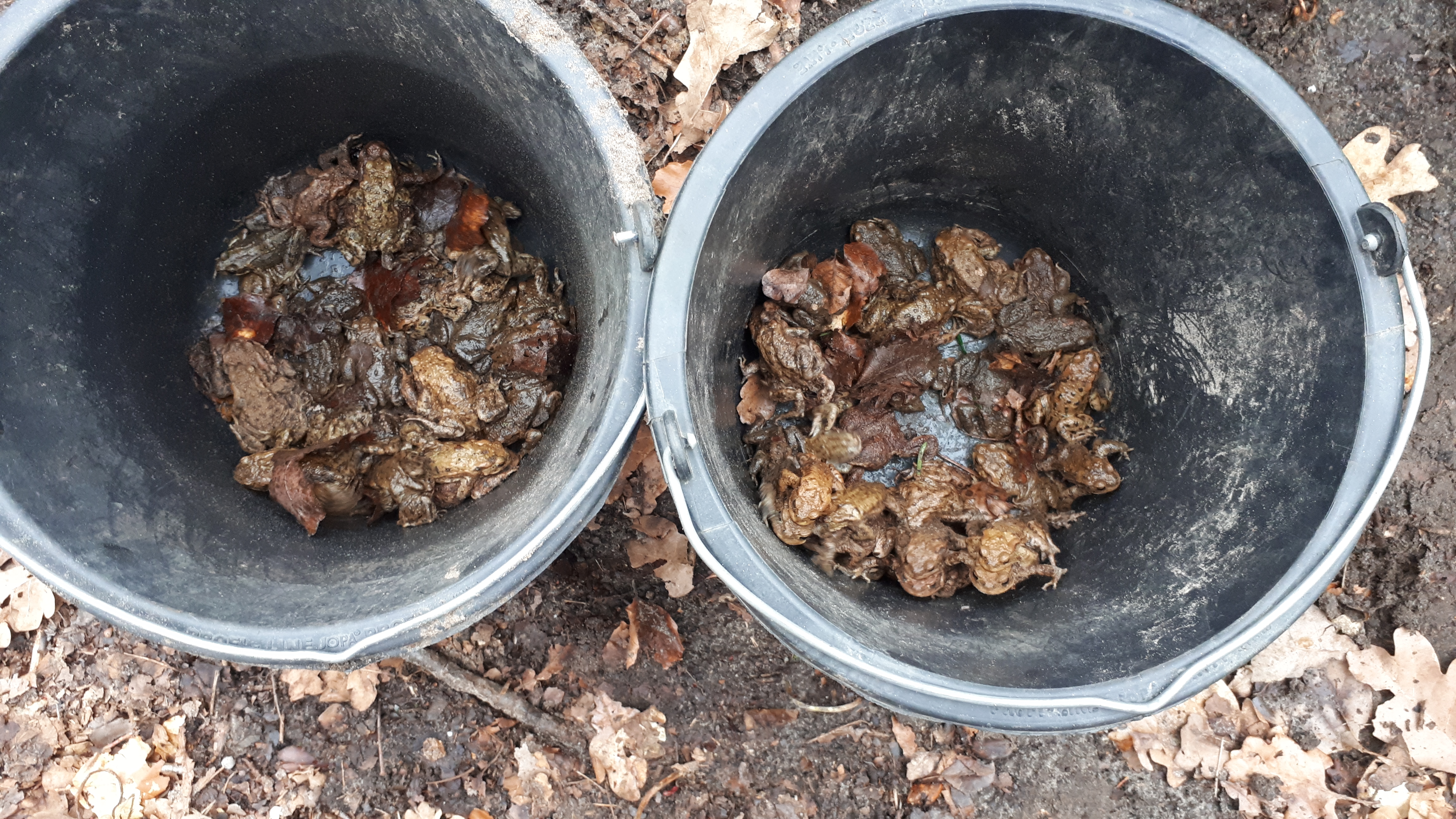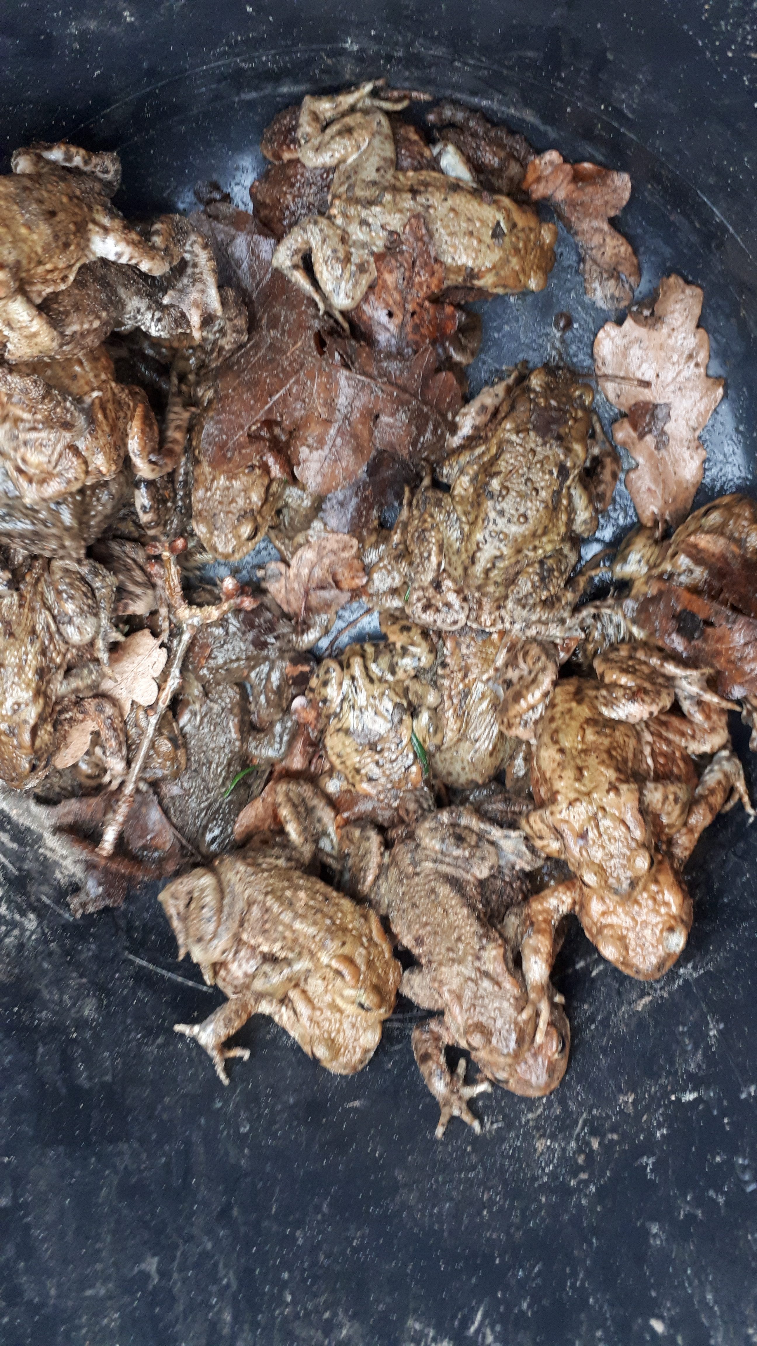 Auf diese Weise gelangten in den folgenden Wochen ca. 1000 Kröten sicher zu ihrem Laichplatz, ohne sich der Gefahr des Überquerens des Stationsweges aussetzen zu müssen. In diesem Jahr waren es ca. 500 Exemplare weniger als in den letzten Jahren. Eine Erklärung hierfür könnten die milden Nächte Ende Februar sein, in denen wahrscheinlich schon einige Kröten aus ihrer Winterstarre erwacht sind und sich vielleicht schon auf den Weg begeben haben.
